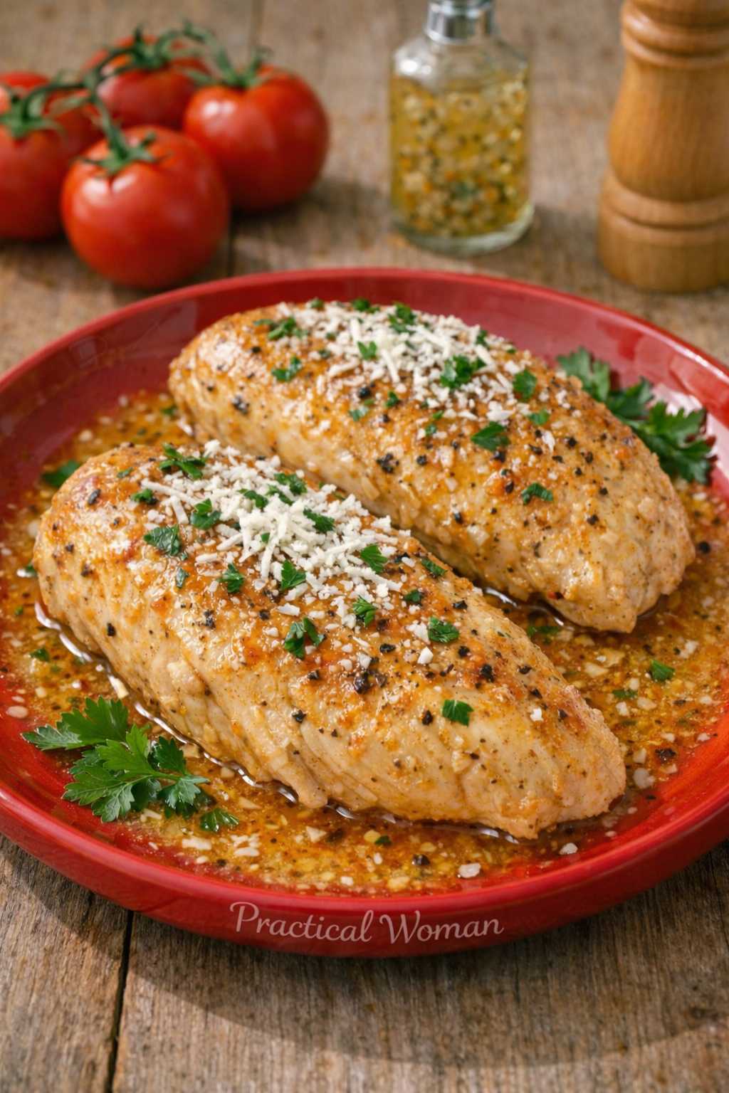 Serve whole with 2 tablespoons of cooking juices spooned over each breast, or shred directly in the slow cooker and toss thoroughly with the juices before portioning.