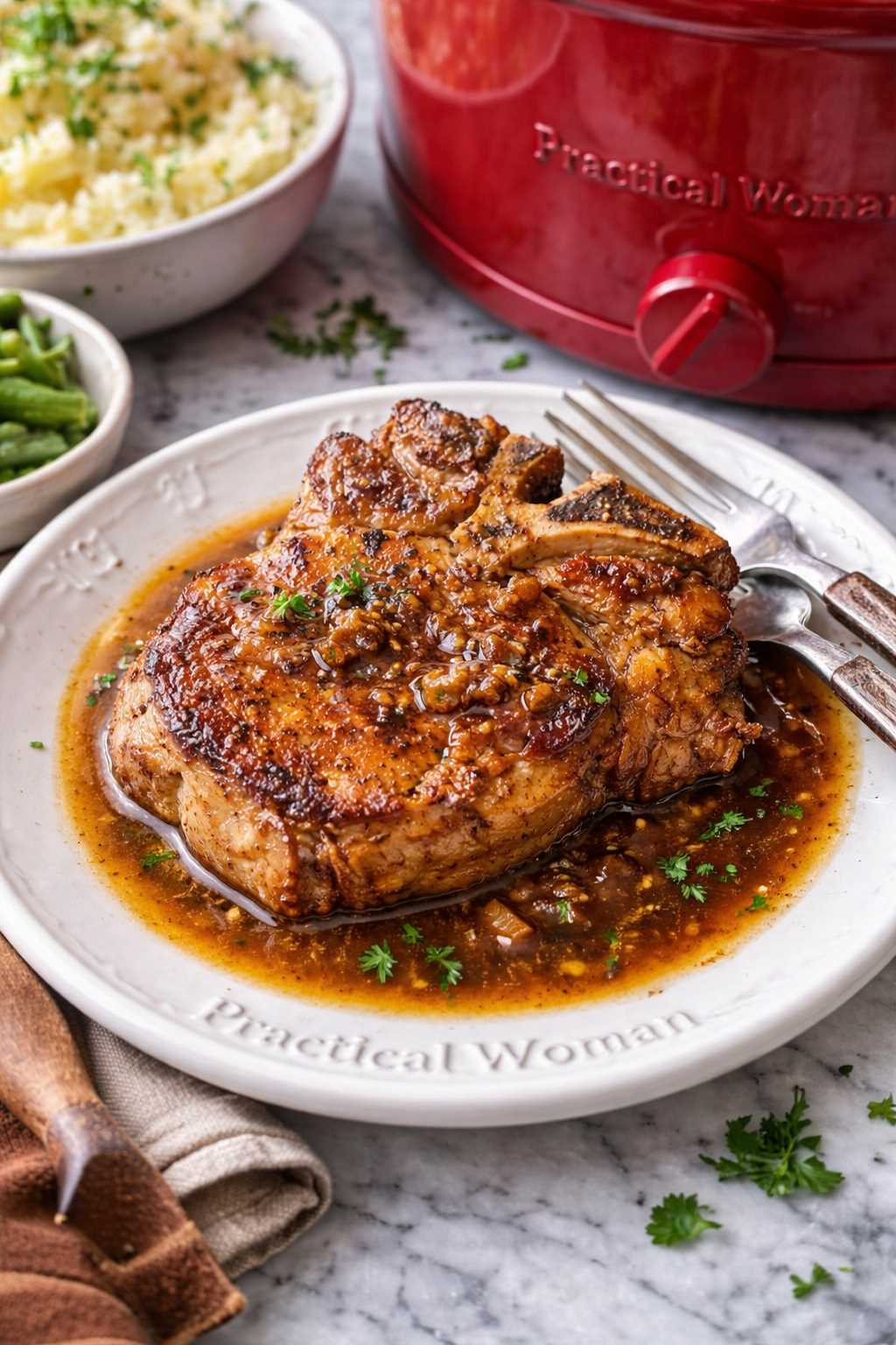 For a thicker sauce, transfer 1 cup of cooking liquid to a saucepan and simmer over medium heat for 8 minutes, then pour over the pork chops.