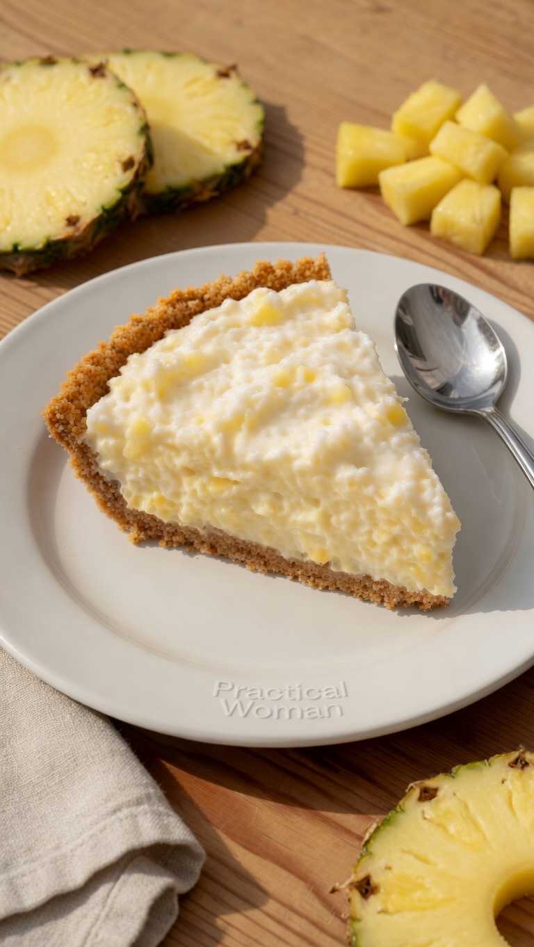 Spoon the pineapple fluff mixture into the prepared graham cracker crust. Smooth the top evenly with the back of a spoon or a spatula.