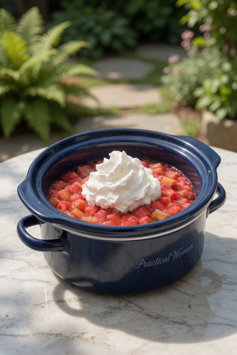 3-Ingredient Slow Cooker Rhubarb Dessert Directions: