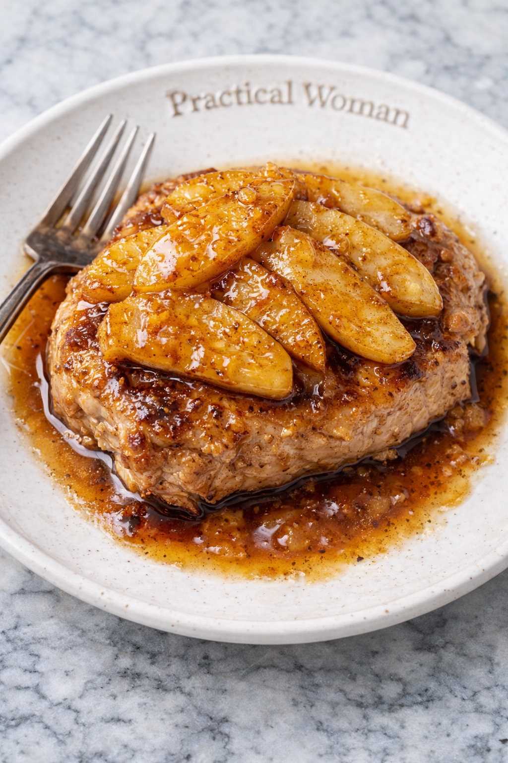 Serve each pork chop topped with apple slices and sauce from the dish.