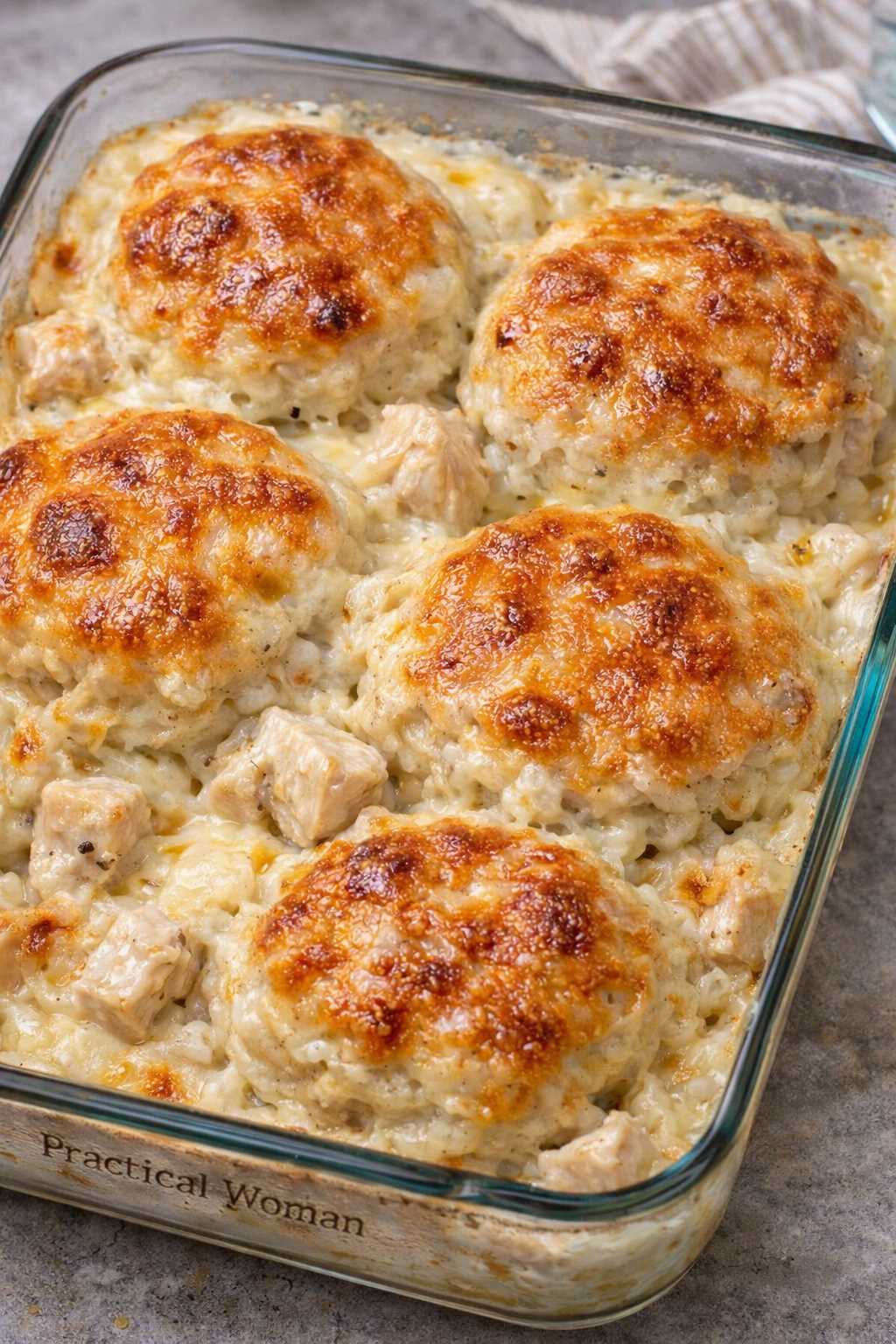 4-Ingredient Chicken Alfredo Biscuit Casserole Ingredients: