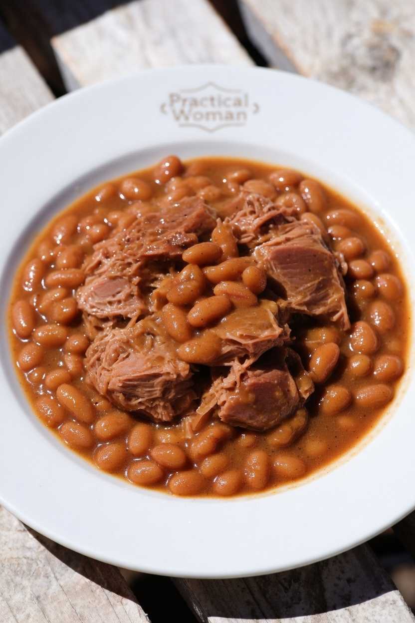 Return the shredded ham to the slow cooker and stir into the beans.