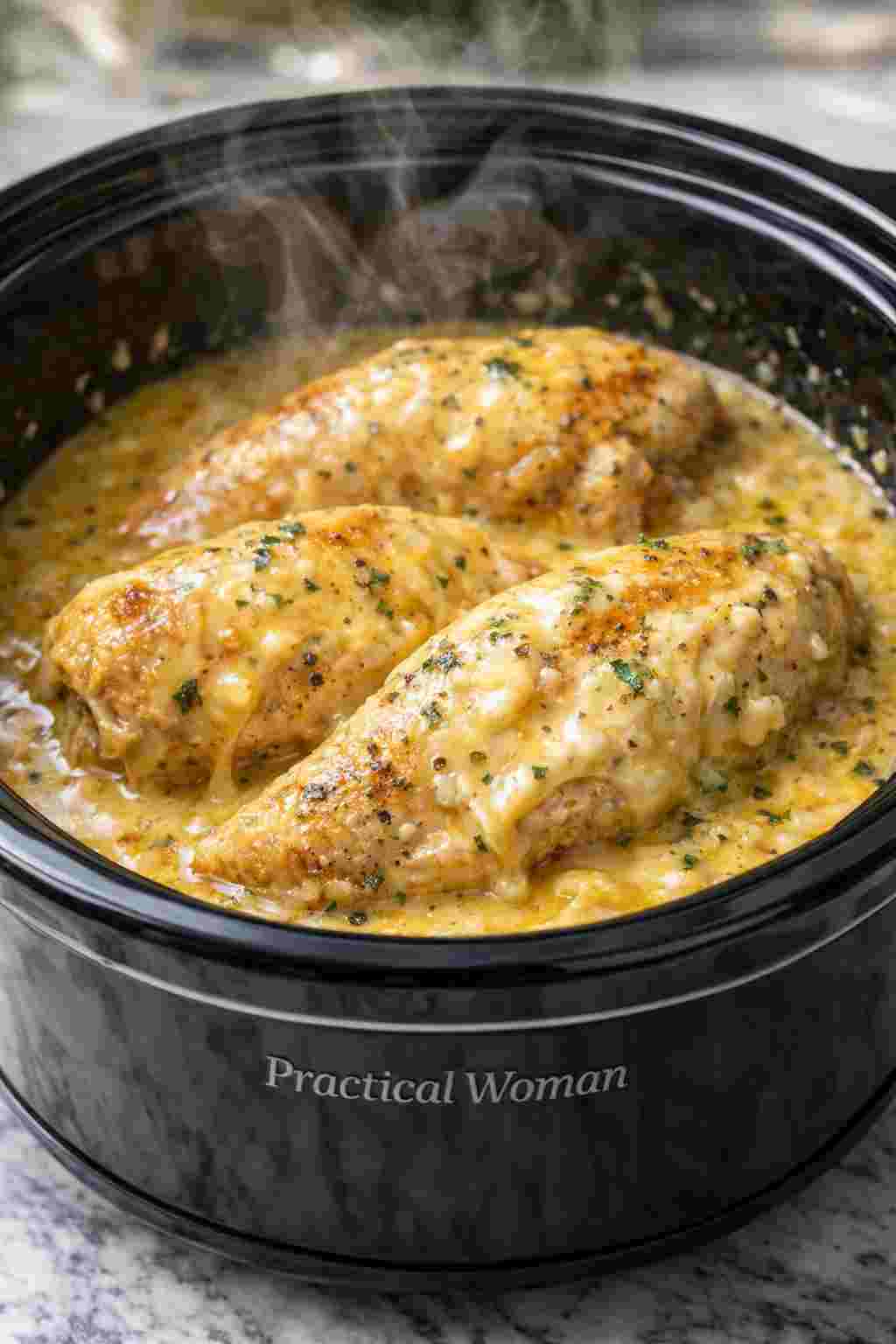 Cover and cook on LOW for 5 hours or on HIGH for 2.5 hours, until the chicken is fork-tender.