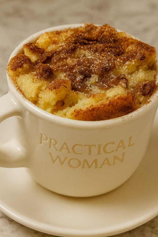 Let the mug cake rest for 1 minute, then sprinkle a bit of cinnamon on top and enjoy warm.