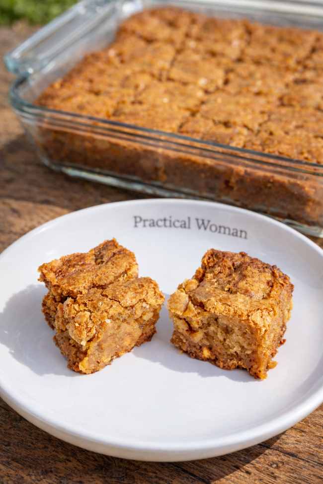 Remove from the oven and allow to cool completely before slicing into bars.