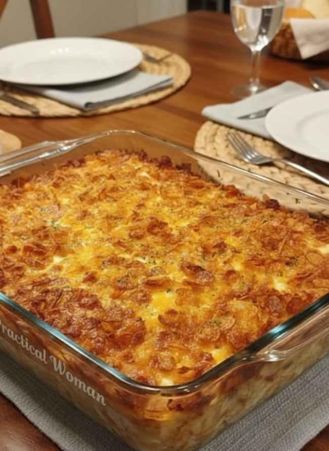 Transfer the mixture into a 3-quart casserole dish and spread evenly.