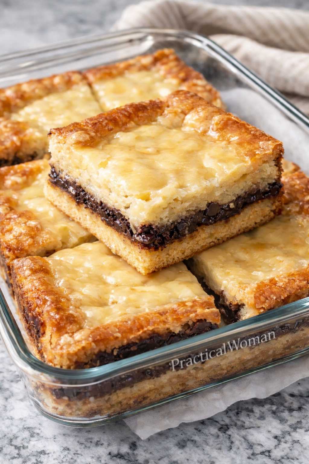 Golden edges with a soft chocolate layer and creamy top create rich contrast in every bite. The center stays tender while the top sets with a delicate crackle for perfect texture balance.