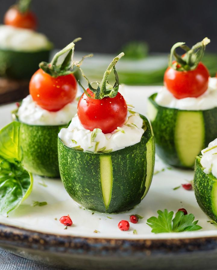 Cucumber Bites with Herbed Cream Cheese & Tomato Ingredients: