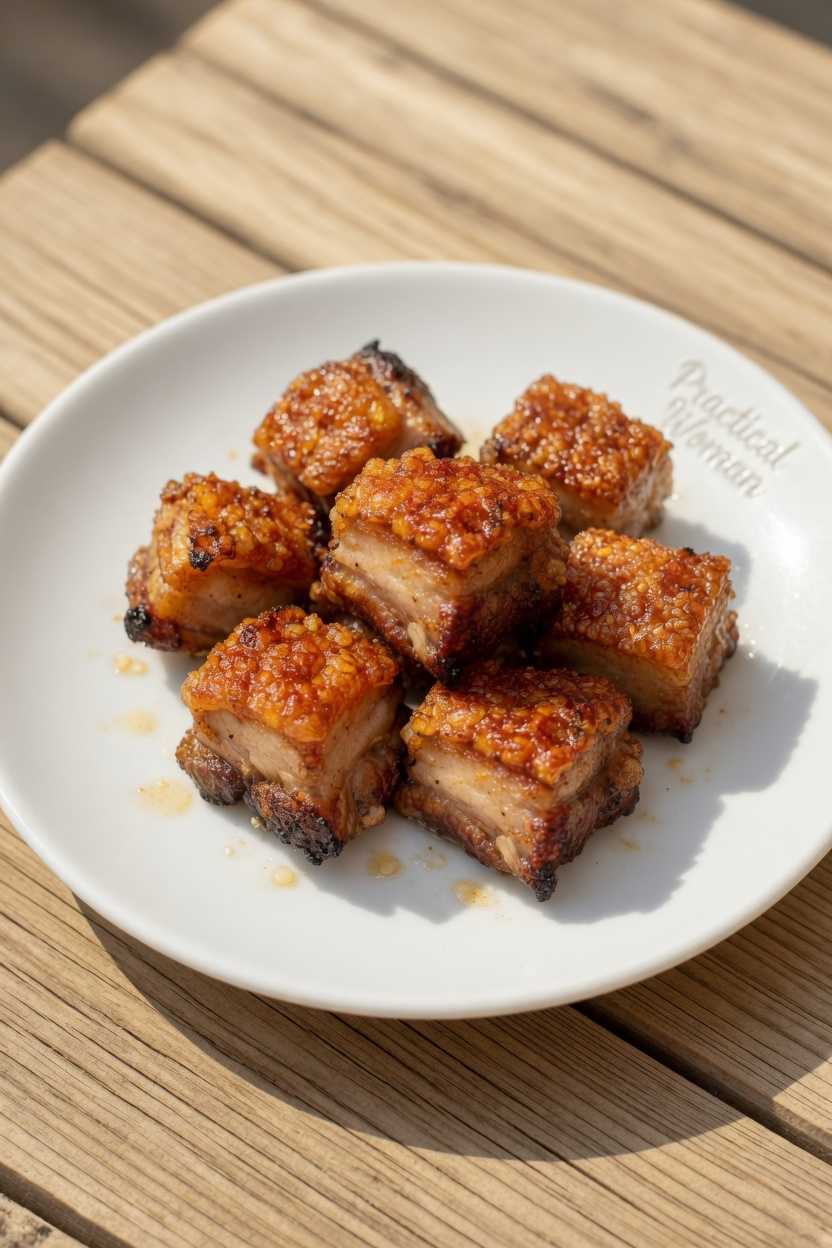 Rest the pork bites in the hot rendered fat for 5 minutes.