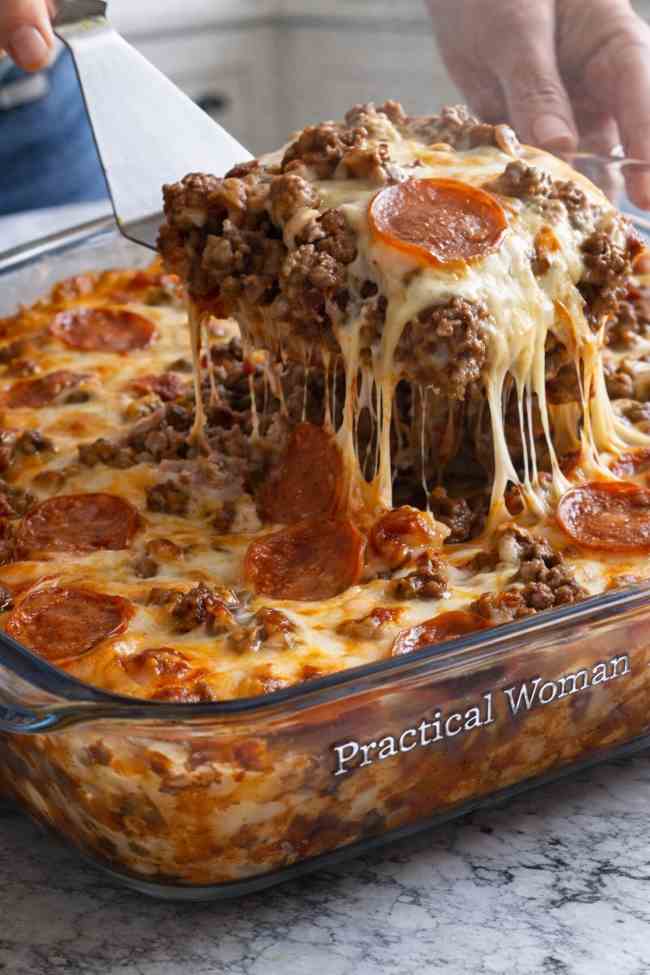 Savory meats, rich sauce, and melted cheese come together in a bold, pizza-inspired bake. The balance of pasta and toppings keeps each bite satisfying without feeling heavy. Perfect for slicing cleanly and serving straight from the dish.