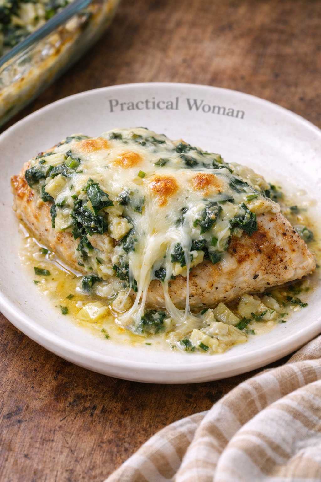 Oven Baked 3-Ingredient Spinach Artichoke Dip Chicken Directions: