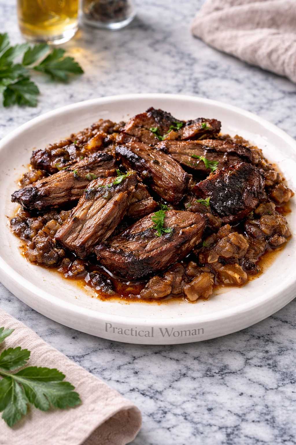 Servings: 6 servings, about 5–6 oz beef with sauce each