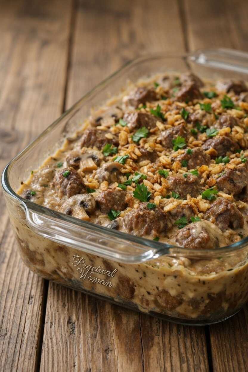 Oven-Baked 4-Ingredient Creamy Mushroom Beef Bake Ingredients: