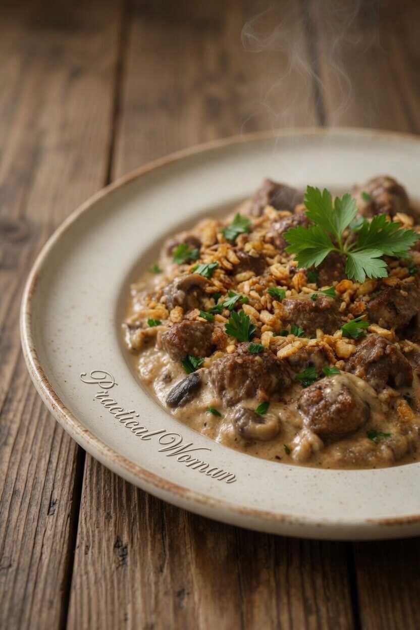 Oven-Baked 4-Ingredient Creamy Mushroom Beef Bake Directions: