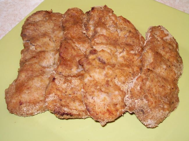 Dip chops in juice mixture, and dredge in breadcrumbs mixture.