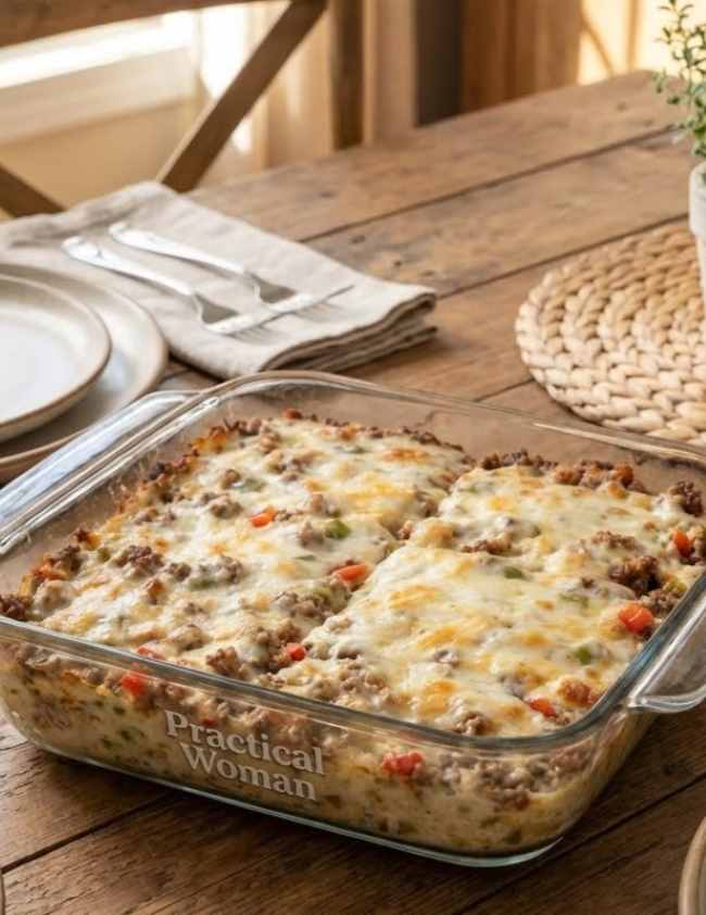 Transfer the beef mixture evenly into a well-greased 9×9-inch baking dish.