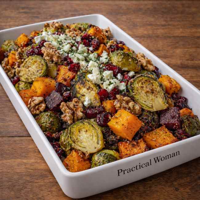 Servings: 4 servings (each serving: approximately 2 cups roasted vegetables with feta and walnuts)