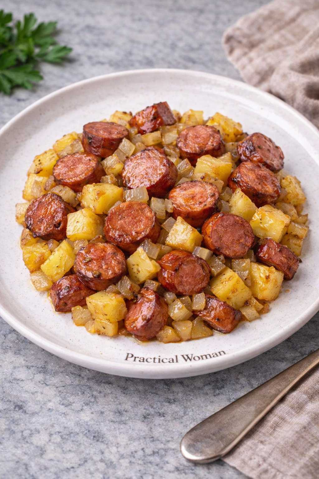 Continue cooking until the potatoes are fork-tender and the hot dog edges are lightly crisped.