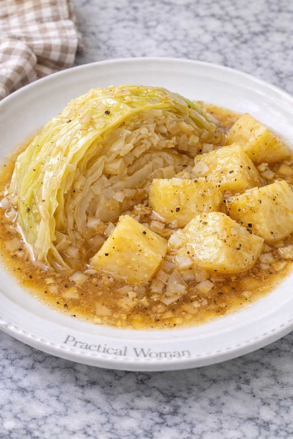 Serve 1 cabbage wedge with about 1 1/2 cups potatoes and broth.
