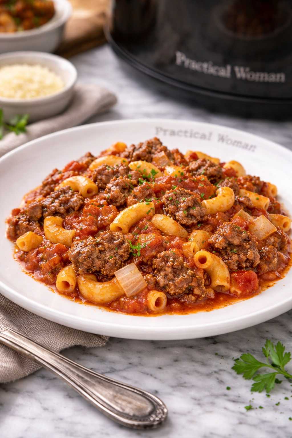 Transfer the beef and onion mixture to a 6-quart slow cooker.