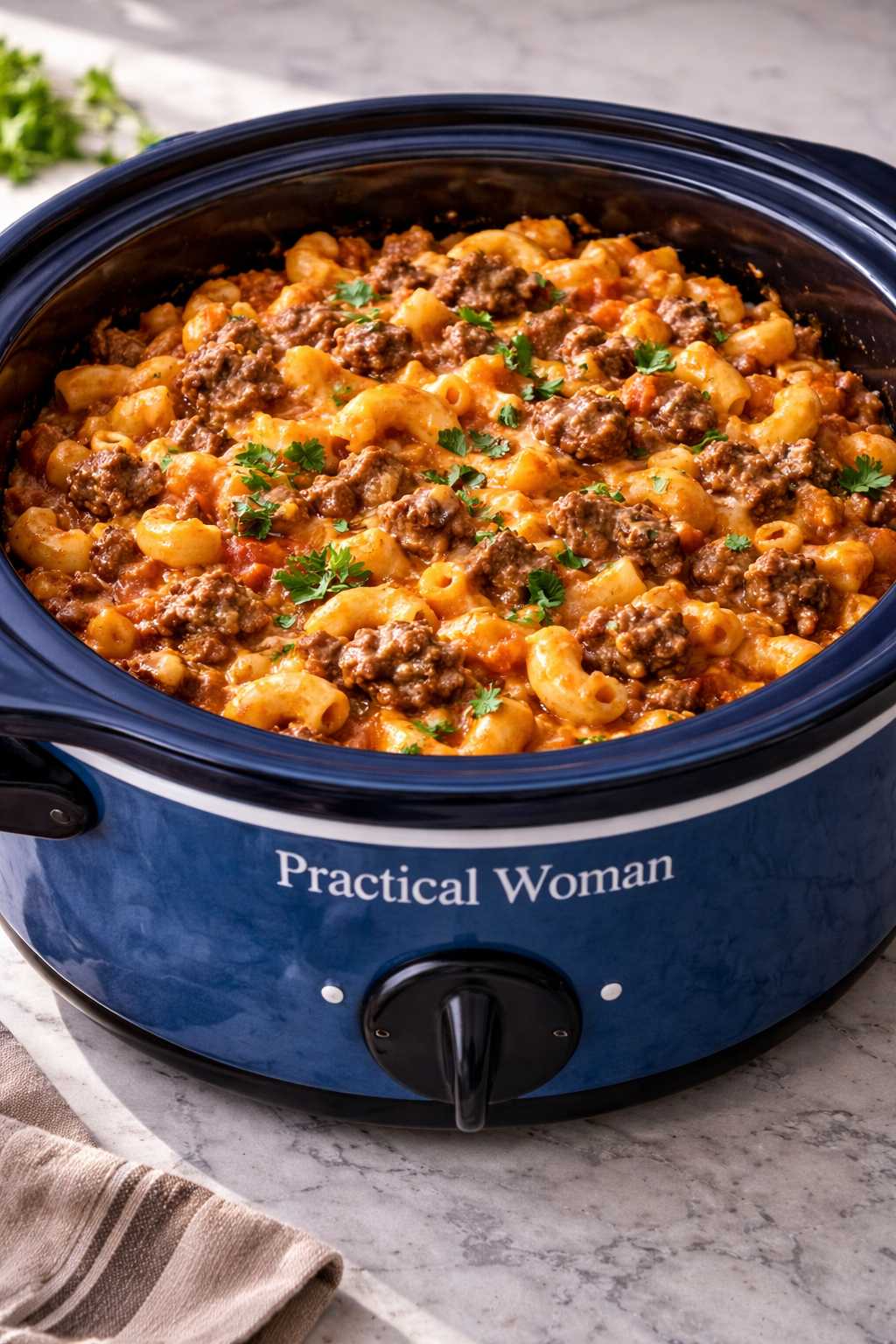 Slow Cooker 6-Ingredient Beef and Macaroni Ingredients: