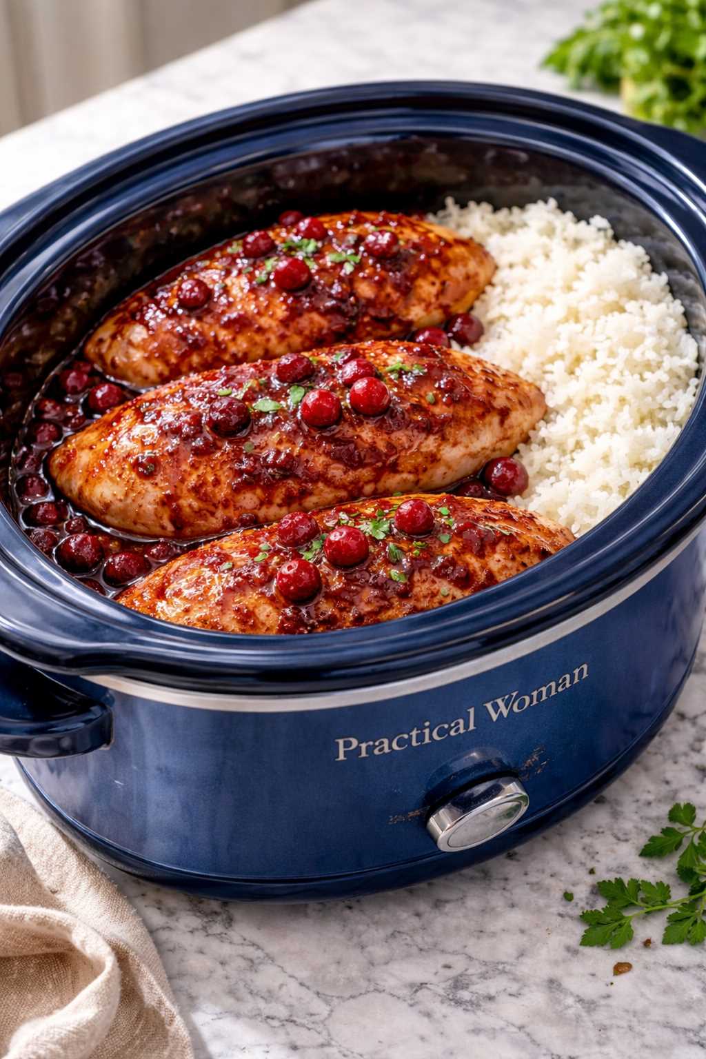 Pour the cranberry mixture evenly over the chicken, coating all pieces completely.