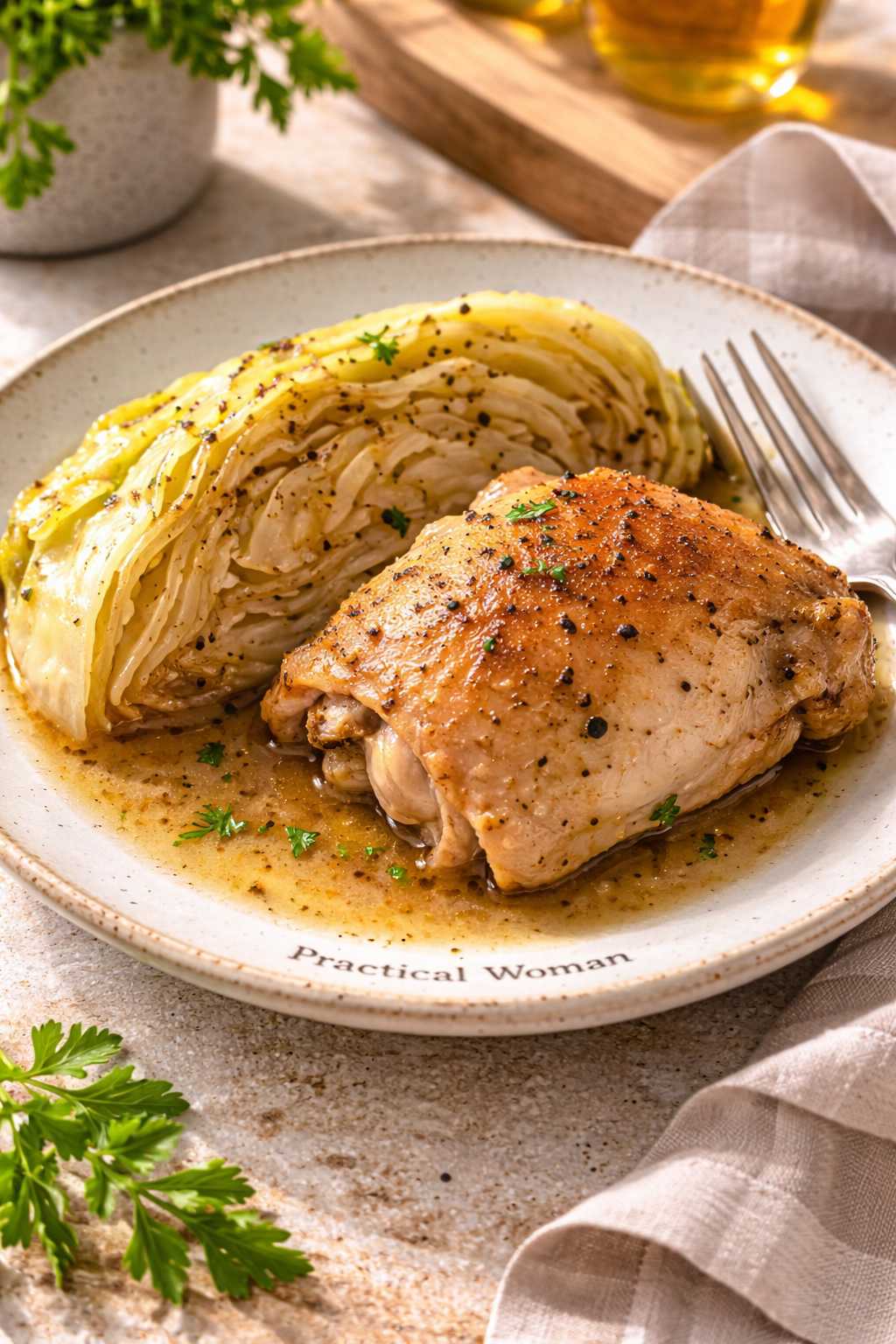 Cover with the lid and cook on LOW for 6–7 hours or HIGH for 3–4 hours until the chicken reaches an internal temperature of 165°F and cabbage is tender but intact.