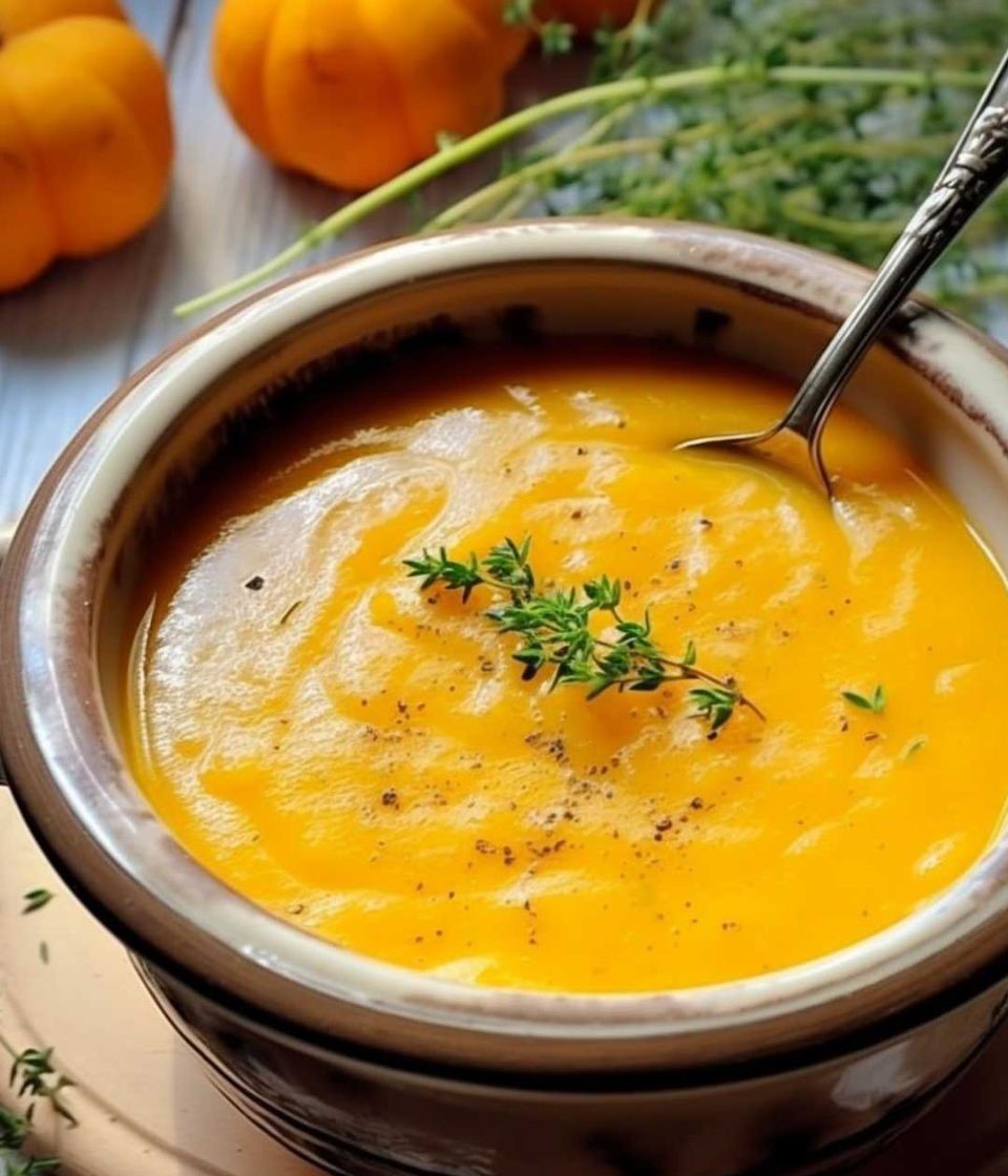 Serve the soup hot, garnished with fresh thyme leaves, if desired.