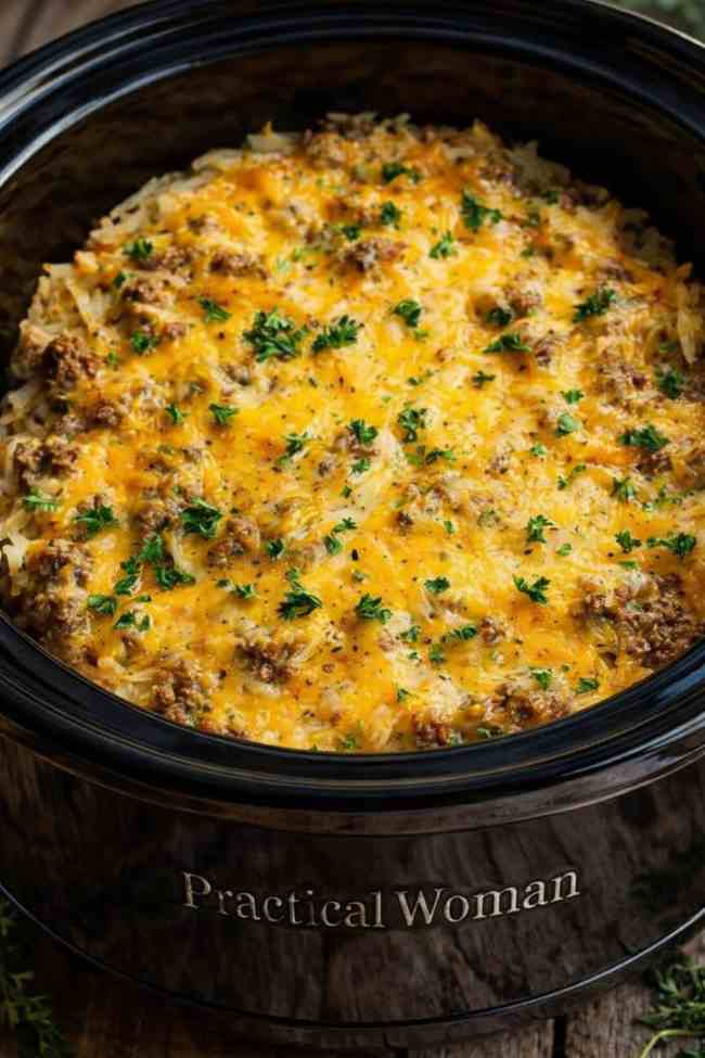 Slow Cooker Ground Beef and Hash Brown Bake Ingredients: