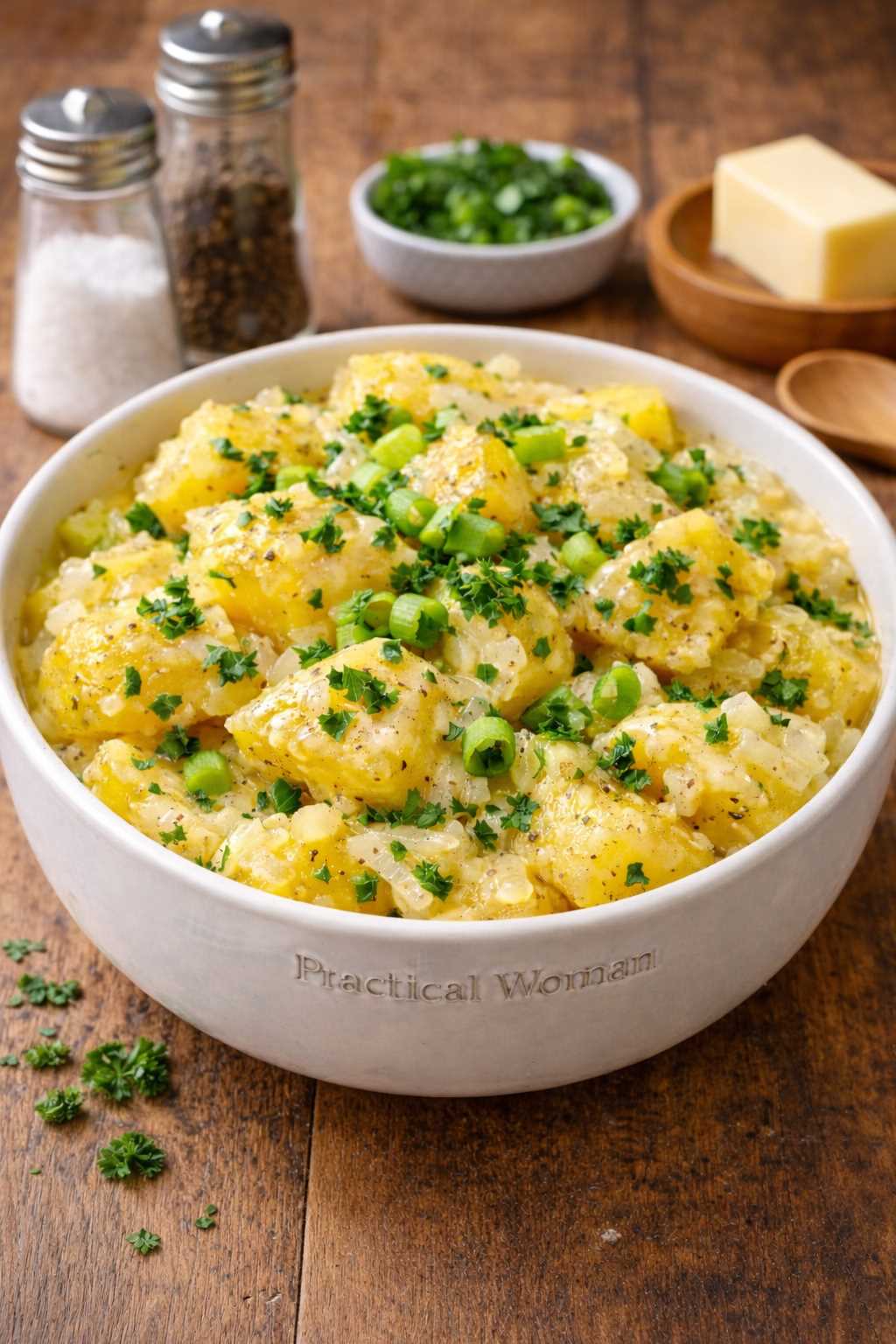 Yukon Gold potatoes, onion, garlic, parsley, green onions, thyme, Swanson Low Sodium Chicken Broth – 0.00