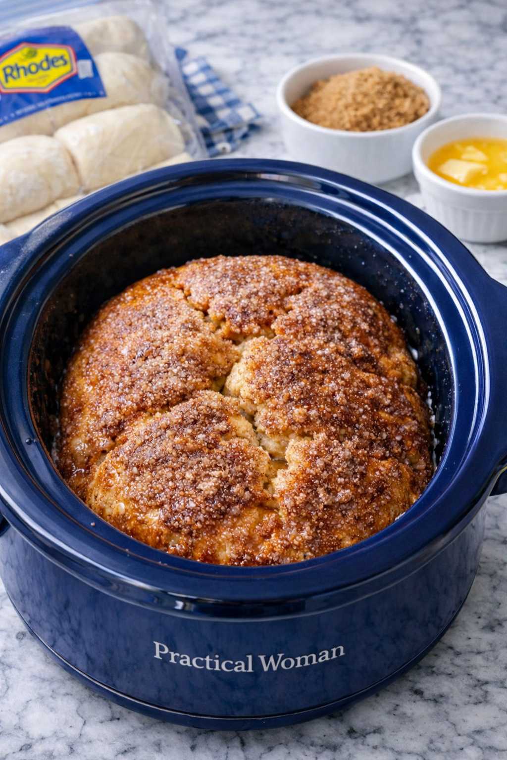 Cover with lid and cook on LOW for 2 1/2 to 3 1/2 hours until dough is fully cooked and edges are golden.
