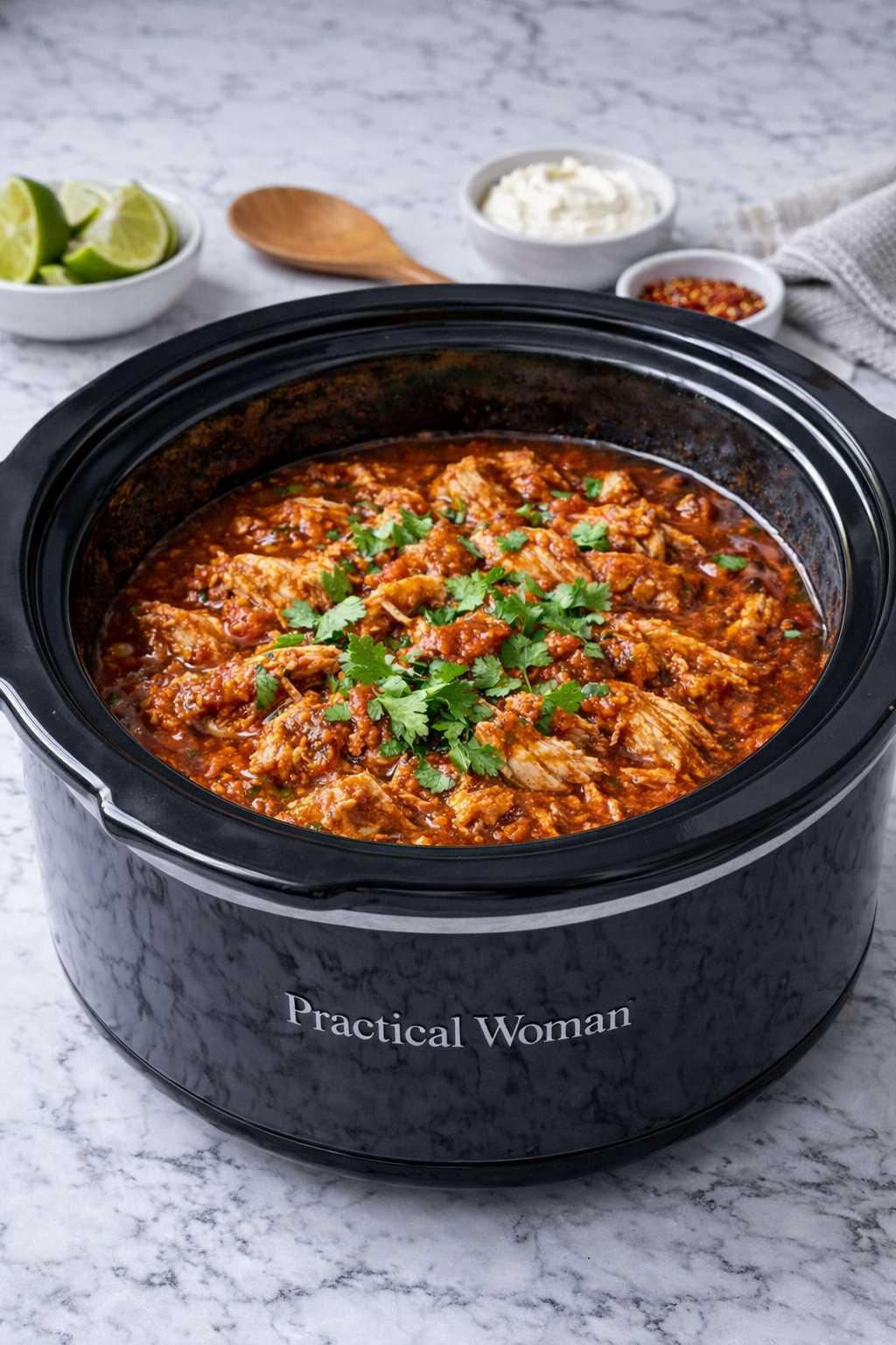 Cover and cook on LOW for 5 hours or HIGH for 3 hours, until the internal temperature reaches 165°F and the chicken shreds easily.