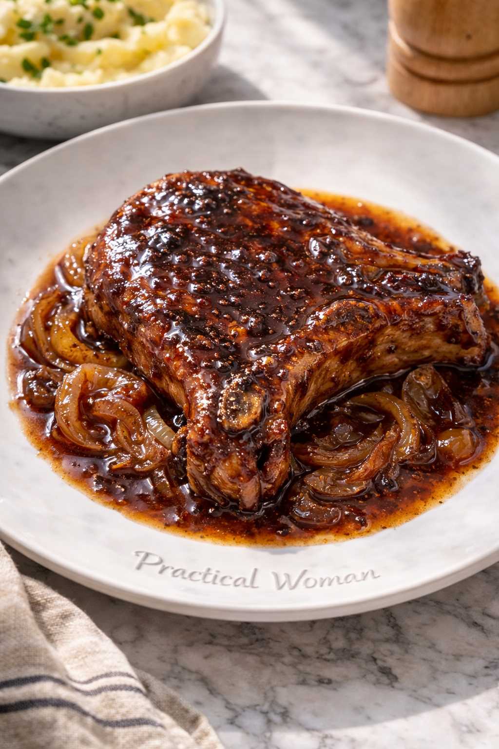Serve hot. One serving equals 1 pork chop with approximately 1/4 cup reduced glaze and onions.